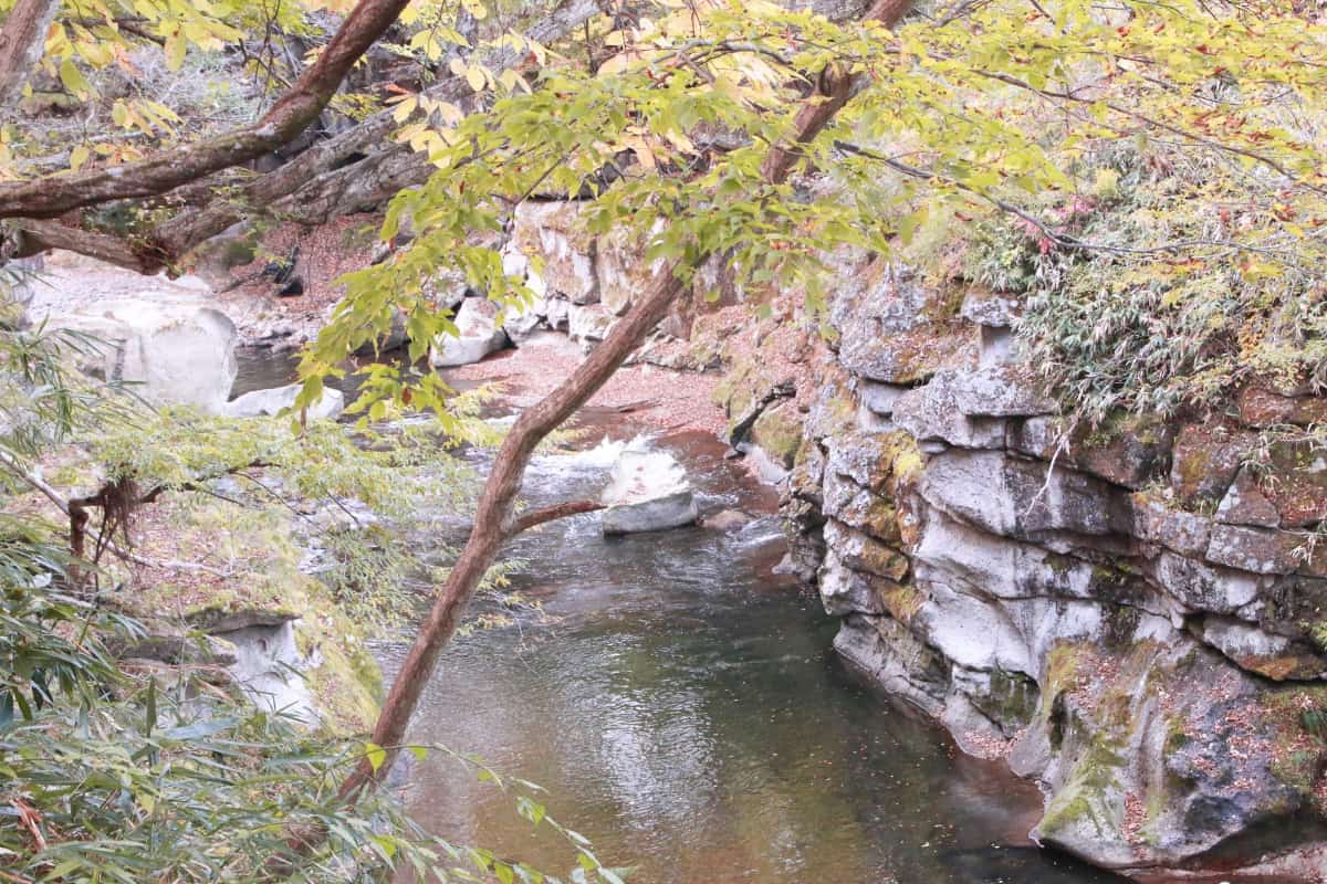 秋保石の浸食により形成された磊々峡は全長650m、最大の深さが20mと非常に大きい淵となっています。