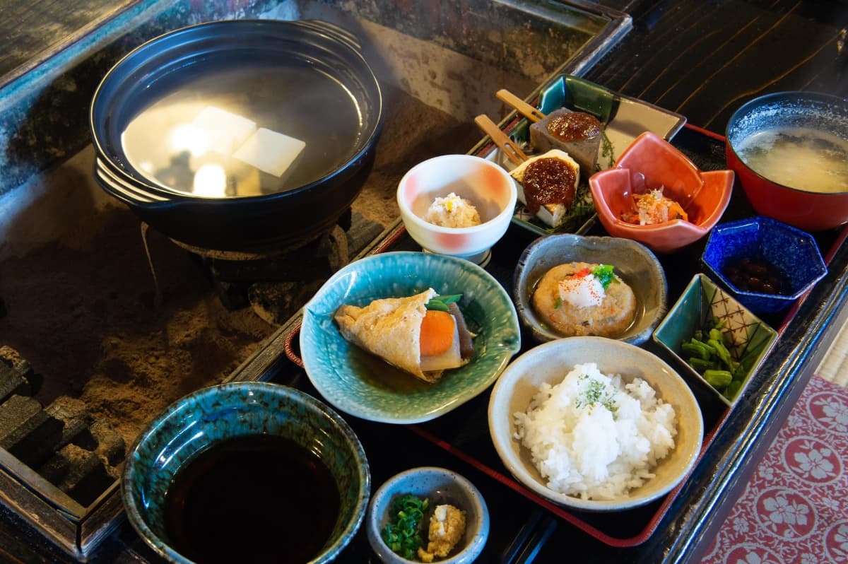 国産の原料を使い、昔ながらの製法で作られた豆腐はしっかりとした噛みごたえでお腹も満たされます。冬の時期は、ひとり用の小鍋を使い湯豆腐にすることができます。散策で冷えた体を温めてくださいね。