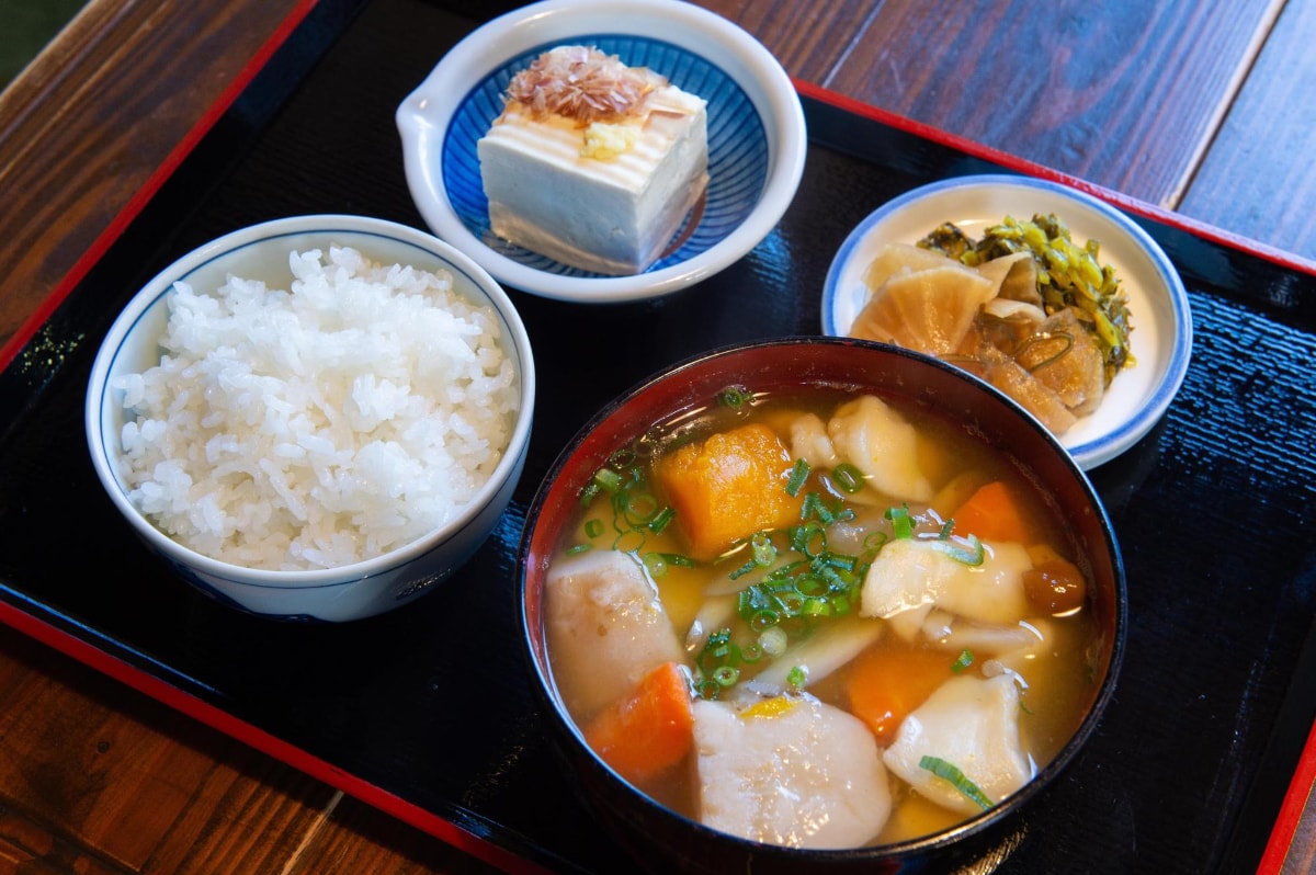 大きめのかぼちゃや人参、里芋など具だくさんで、野菜の旨味が凝縮した醤油仕立ての汁は、最後の1滴まで飲み干したくなる美味しさです。