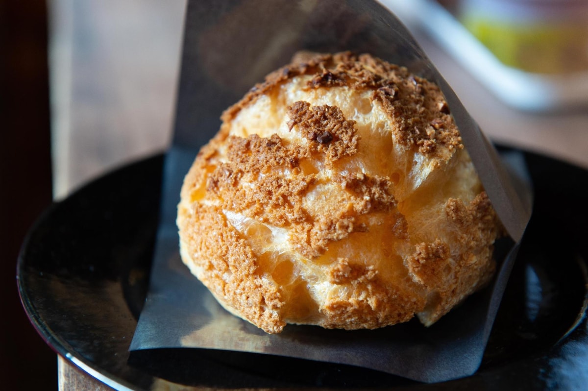 パティスリー麓のお菓子はどれも美味しいと評判ですが、その中で人気ナンバーワンを誇るのが塩麹シュークリーム(1個250円)です。