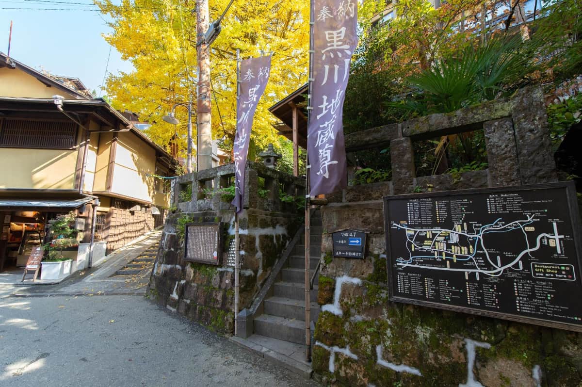 黒川温泉バス停に到着したら、黒川温泉2泊3日観光のスタートです!