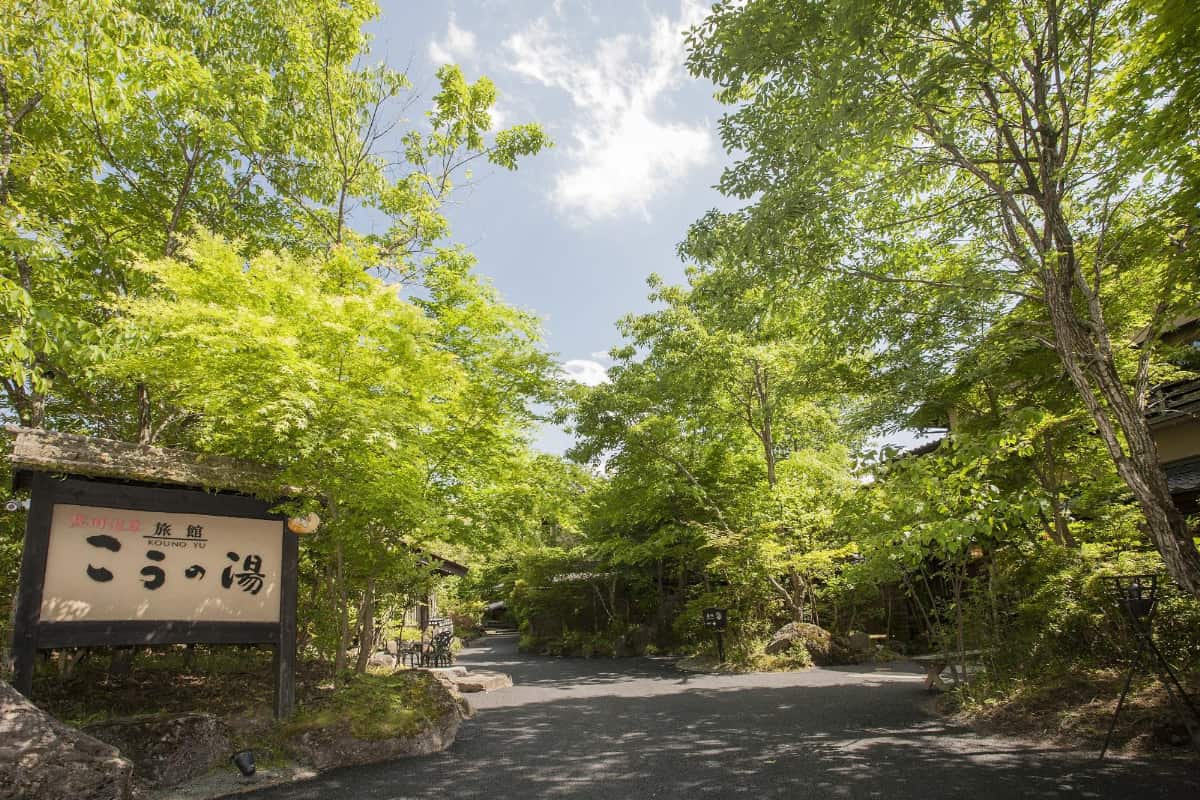 日本一深い立ち湯がある温泉宿として知られるこうの湯へと向かいます。
