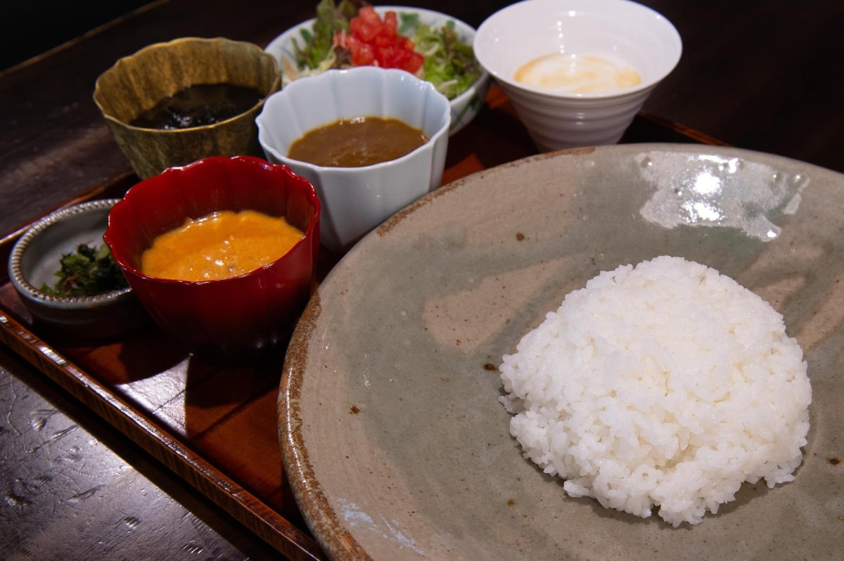 お店で1番人気の小国まるごと三種のカレー(1,300円)を堪能します。