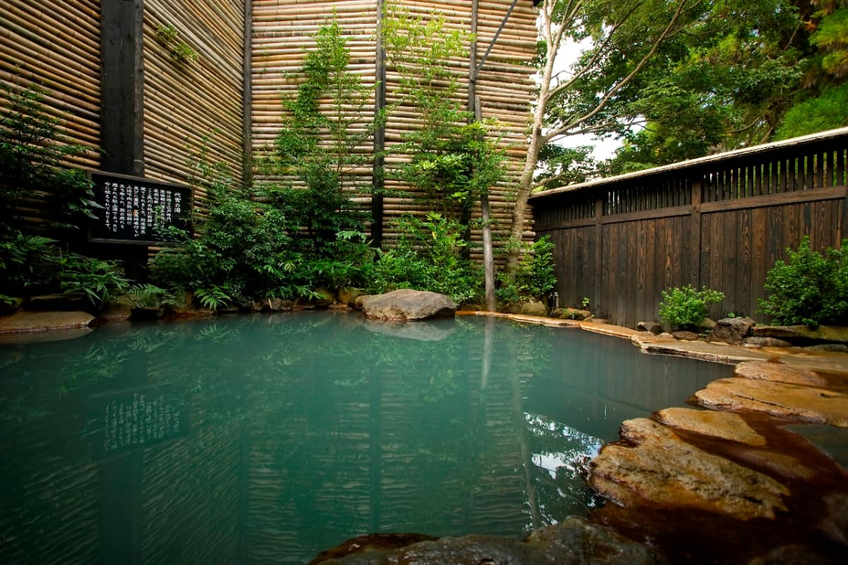 露天風呂の湯は300年以上こんこんと湧き続ける温泉水。肥後国熊本藩最後の藩主・細川護久公(ほそかわ もりひさ)歴史に思いを馳せながらゆっくりと温泉をお楽しみください。