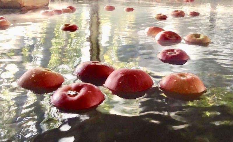 りんごを浮かべた「りんご温泉」があります。朝日町のりんご栽培は100年を超える歴史があるそうで、そのりんごを浮かべた「りんご温泉」は、平成3年に作られました。