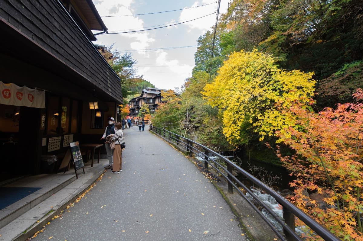 そこからほんの少し歩いて細い道に入ると、黒川温泉街が目の前に広がります。
