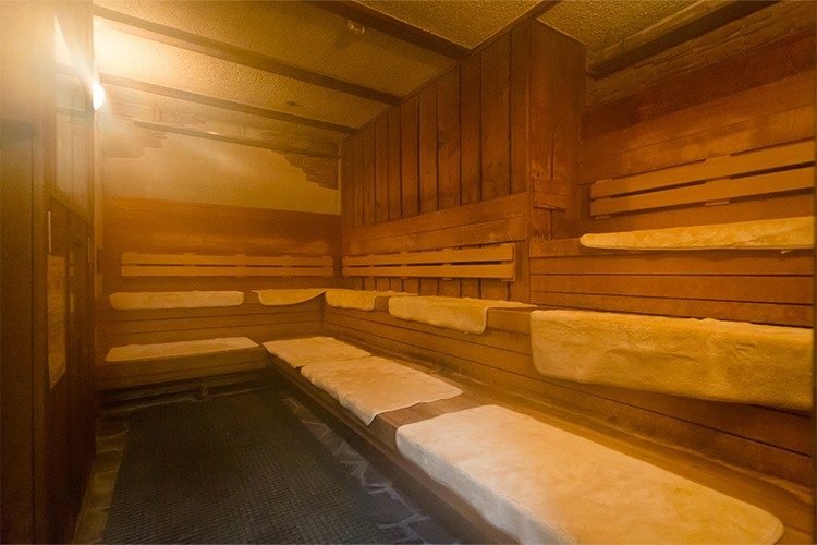 ボナサウナは、ベンチ下に配置したボナサームヒーターで室内を加熱すると同時に、ヒーター内の香花石に水がかかることで、室温85~95度、湿度15~20%の最適な高湿度の空気バランスが整います。鼻や喉のヒリヒリ感のない心地よい刺激で、疲れやストレスを汗と一緒に落とすことができます。その他、高温で湿度の少ないサウナ、アロマサウナがあります。