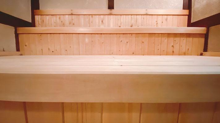 東京染井温泉 SAKURAのサウナは、7段もの段差によって縦にスペースが広くなっている『スタジアムサウナ』が特徴です。