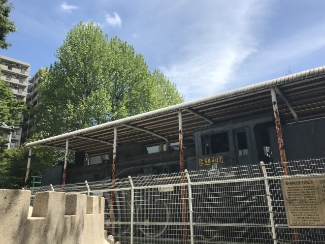 複数の遊具や滝と水の滑り台が人気の公園ですが、かつて北海道を走っていた、C58型のSLが展示されている公園でもあります。ケヤキやイチョウなどの高木が梢を連ねているので秋も綺麗な景色ですが、ソメイヨシノやツツジ、アジサイなどが、春から夏の景色も彩ります。