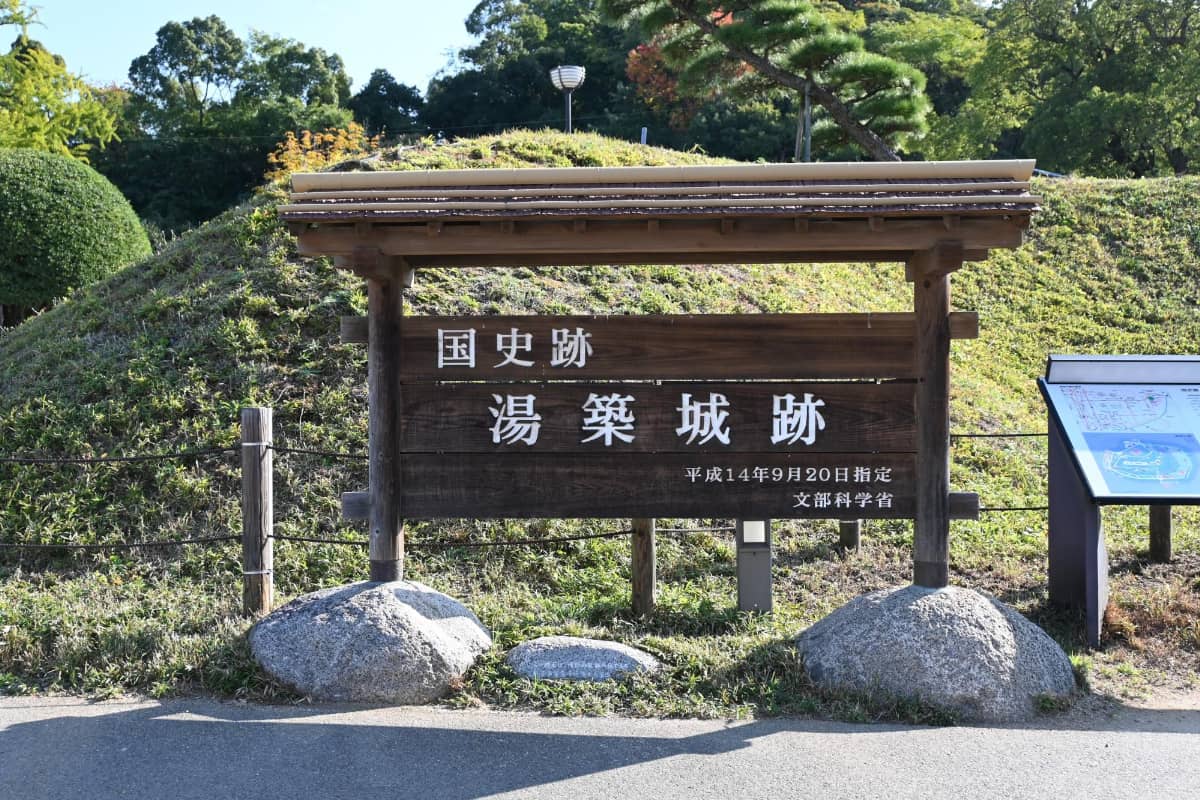 敷地内には湯築城資料館が建てられているほか、堀や土塁も見ることができます。