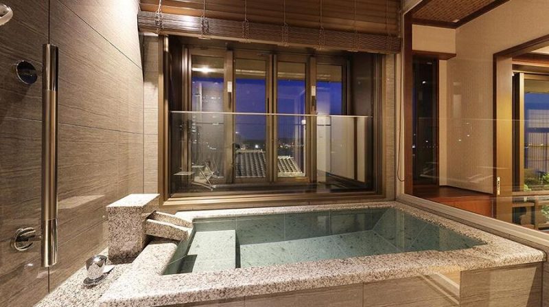 出典:公式ホームページ(庭園が楽しめる桧の半露天風呂)
