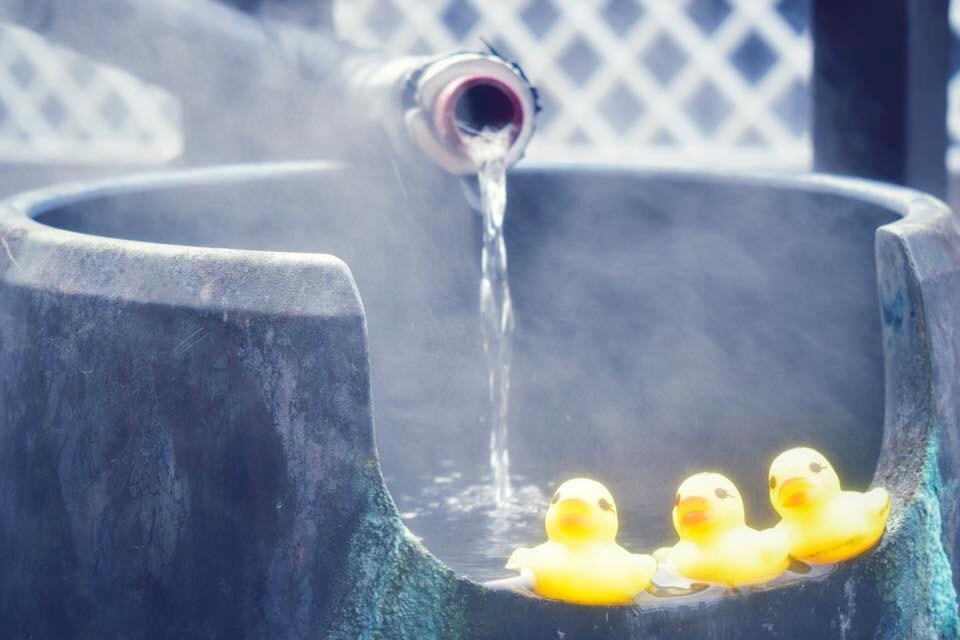 ちょっと熱めの源泉かけ流しのお湯が楽しめる共同浴場「しろがね湯」。
