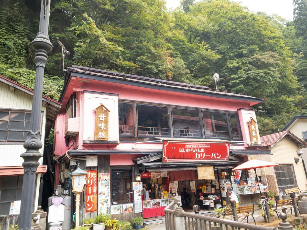 銀山温泉街から白銀の滝に向かい、白銀の滝の50mほど手前にはカリーパンで有名な「はいからさん」があります。