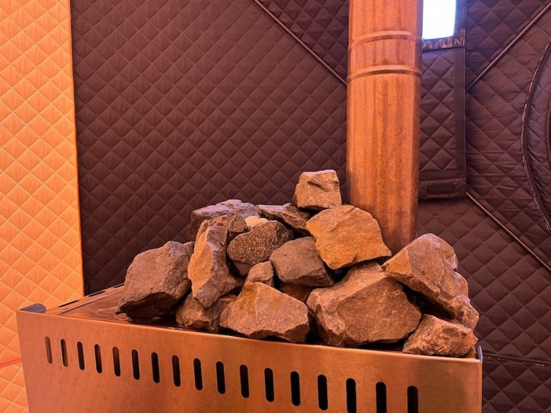 ストーブの上で熱せられた石に水をかけることで水蒸気を発生させ、一気に室温と体感温度を上昇させることで発汗を促進させます。男性にはストレス解消とスタミナの回復、そして女性には美容と癒しを与える効果があるそうです。