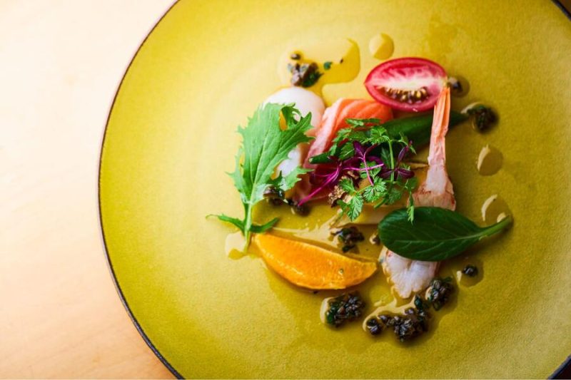 地元で採れた新鮮な野菜を主役にすることをコンセプトとしており、野菜や山菜を食べて育つ肉や海に流れ込む山の恵みで育った魚や貝を、野菜の美味しさを引き立たせるためのわき役として組み合わせた料理は、贅沢感と素材の持つ旨味を存分に堪能することができます。
