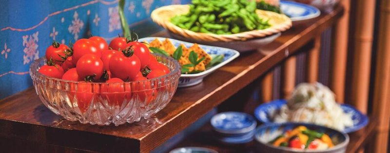 大忠の最も大きな特徴は料理です。朝食、夕食ともに蔵王の旬の食材がふんだんに使われ、口に入れれば自然を感じることが可能です。また、食事する場所の中央のカウンターには「おばあちゃんの味」をコンセプトにした懐かしさを感じる数種類の「おばんざい」があります。そのため、自宅とは離れた場所にも関わらず、安心感を覚える人も多いはず。その他、チェックインから夕食まで飲み物が無料のオールインクルーシブなのも嬉しいポイントです。