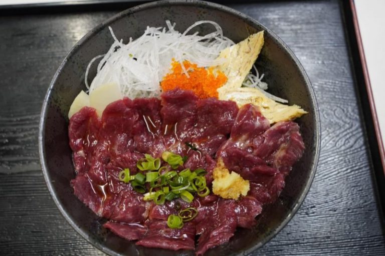 こちらのイチオシメニューは山梨名物「馬刺し丼」(950円)です。