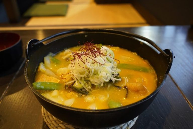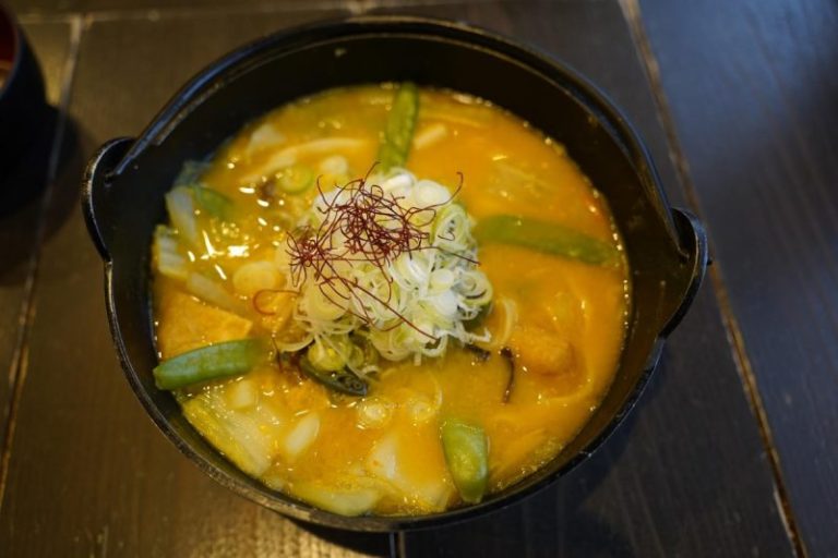 席には辛口の味噌が備わっており、途中で味噌を少し加えることでまた違った味を楽しめます。