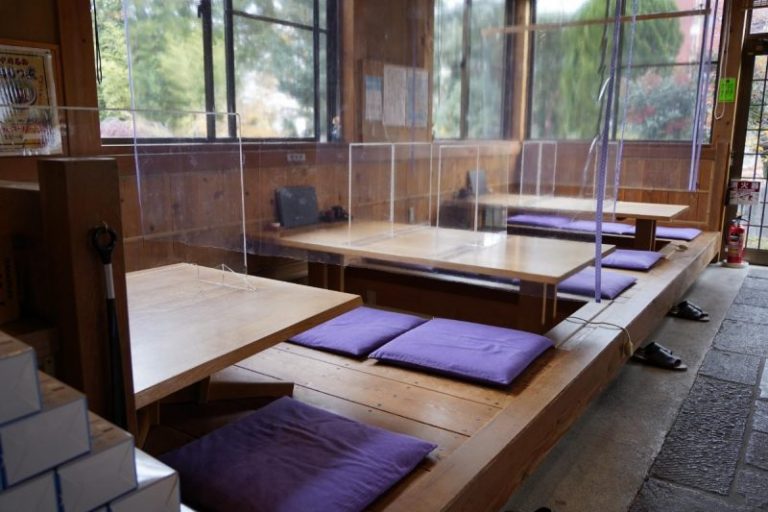 途中に山梨の名物「桔梗信玄餅(ききょうしんげんもち)」が売られているお土産物屋もあります。