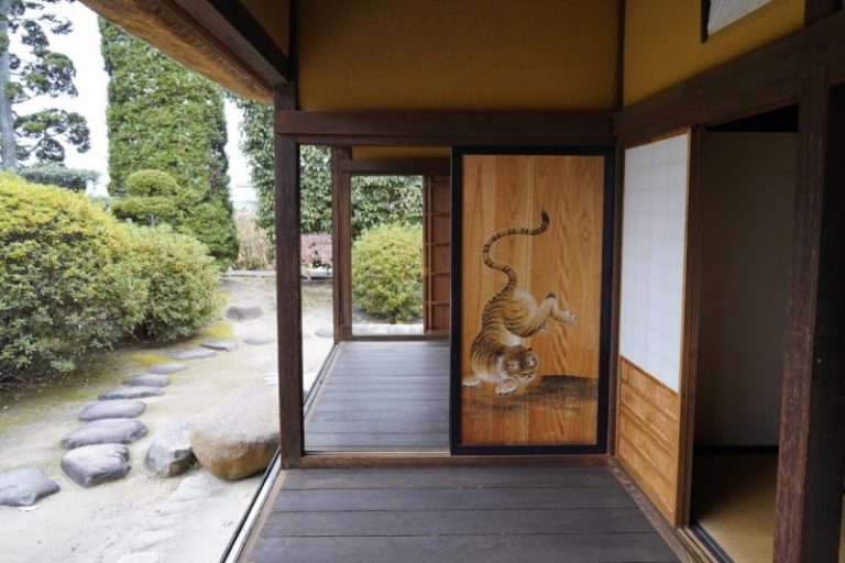 見どころは入母屋(いりもや)造りの書院や残された文書類、襖絵です。