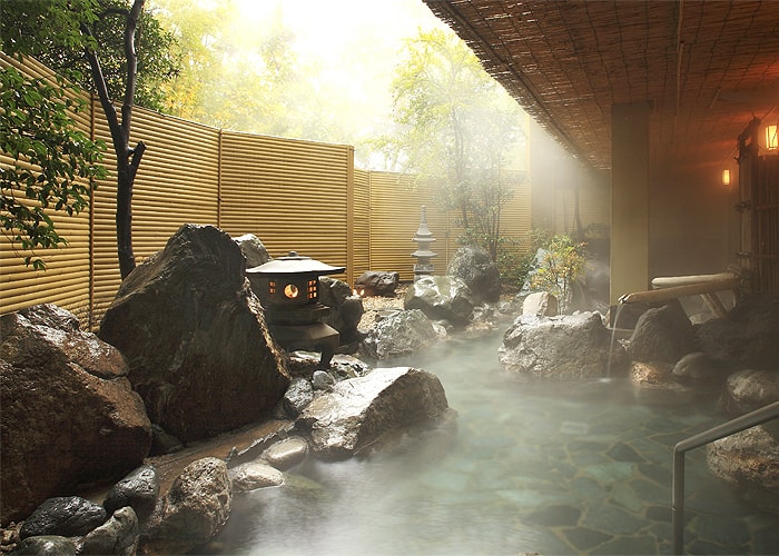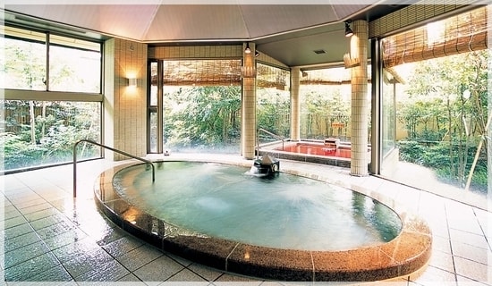 大浴場はガラス張りになっており、手入れの行き届いた和風庭園や木々を見ながら、明るく開放的な空間で温泉が楽しめます。