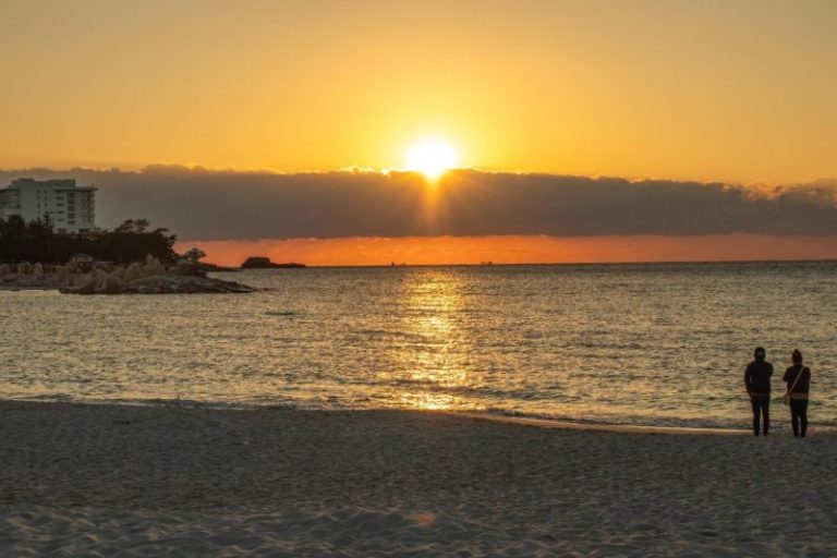 天気のよい日には、太平洋に沈む美しい夕陽を眺めることができます。体が冷えてしまわないように、暖かい格好で行きましょう。