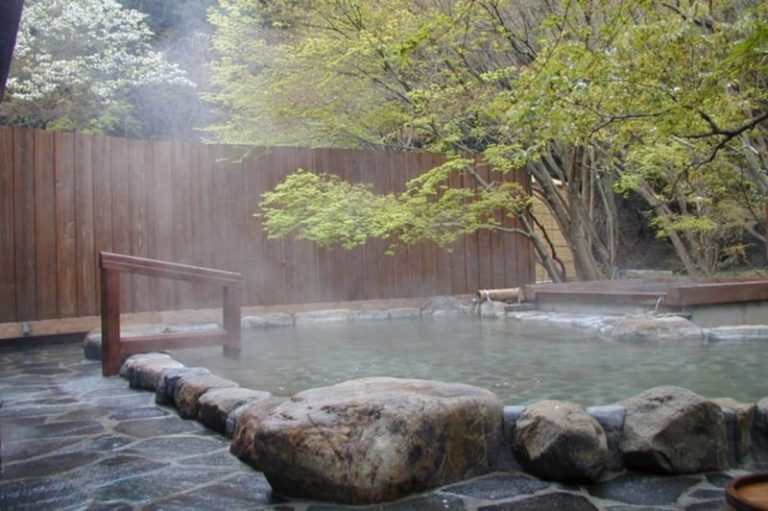 木々に囲まれ、まるで森の中にあるかのような露天風呂。まろやかな備長炭風呂、とろみのある湯が特徴の内湯があります。