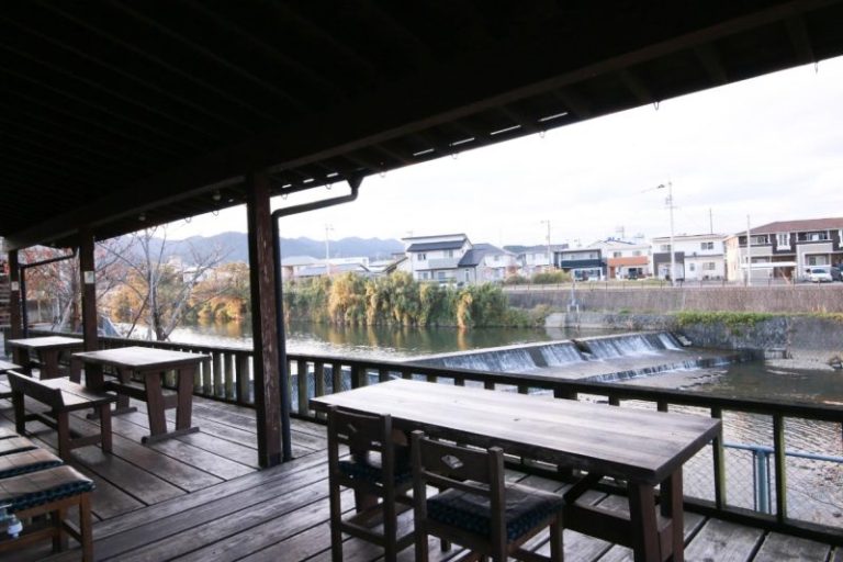 川沿いに建つ古民家造りのお店で、店内も純和風の落ち着いた雰囲気になっています。