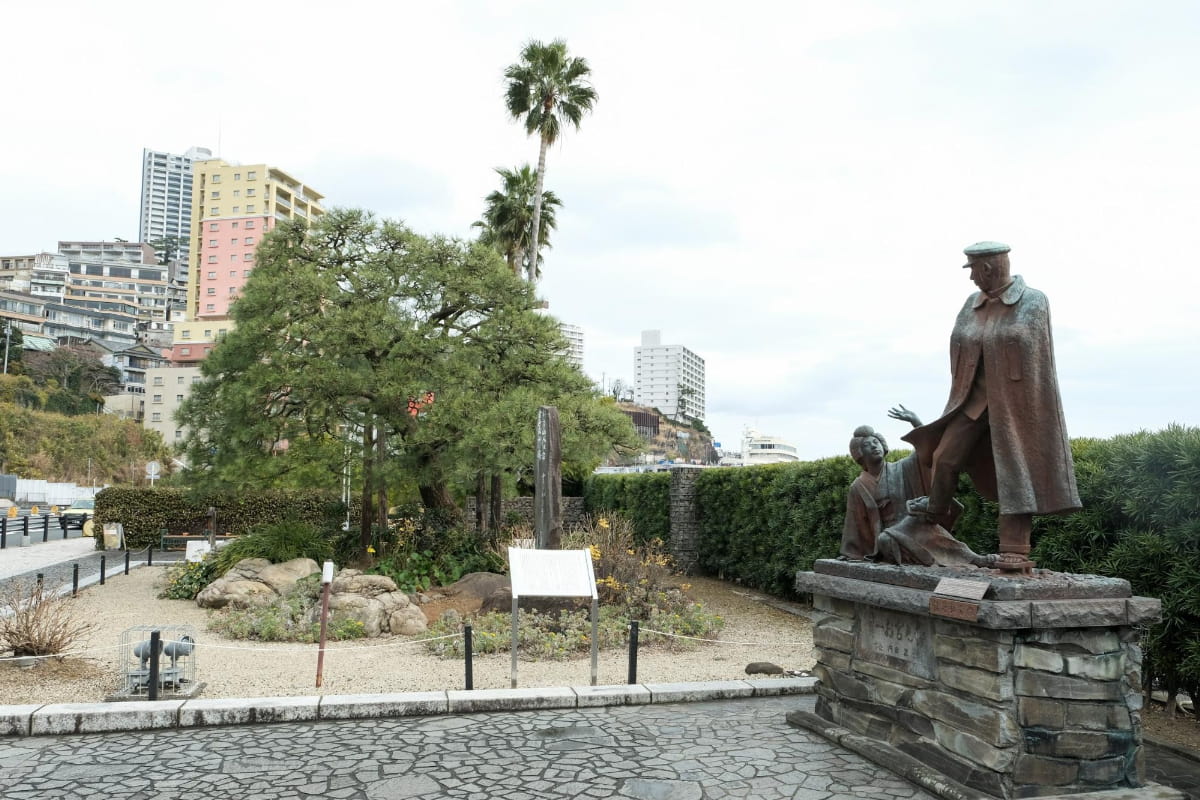 「お宮の松(おみやのまつ)」は、明治時代の小説家・尾崎紅葉(おざきこうよう)の小説「金色夜叉(こんじきやしゃ)」にちなんだ観光地です。