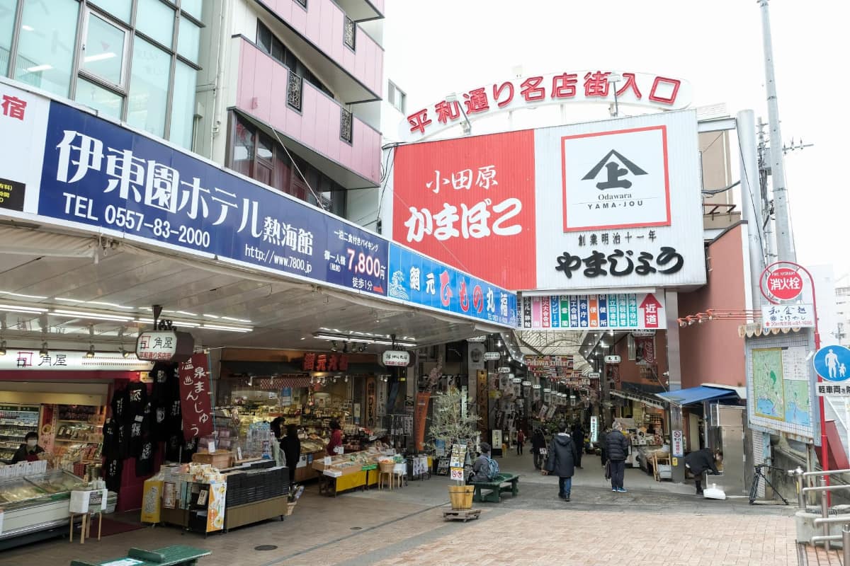 熱海駅周辺は飲食店やお土産屋、コンビニや銀行など様々な店舗が揃っています。