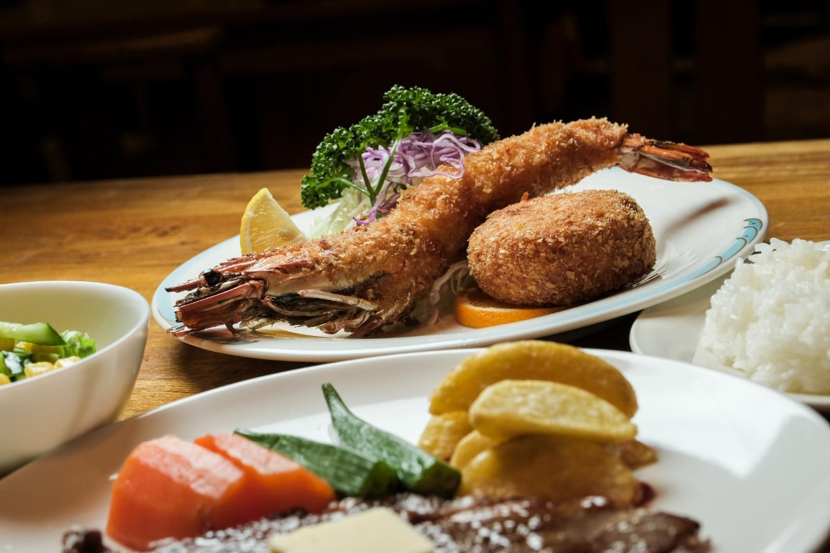 おすすめのメニューがエビフライやカニクリームコロッケ、カツがついた「ミックスフライ」で、スコットで人気の高いフライが一度に楽しめるメニューになっています。