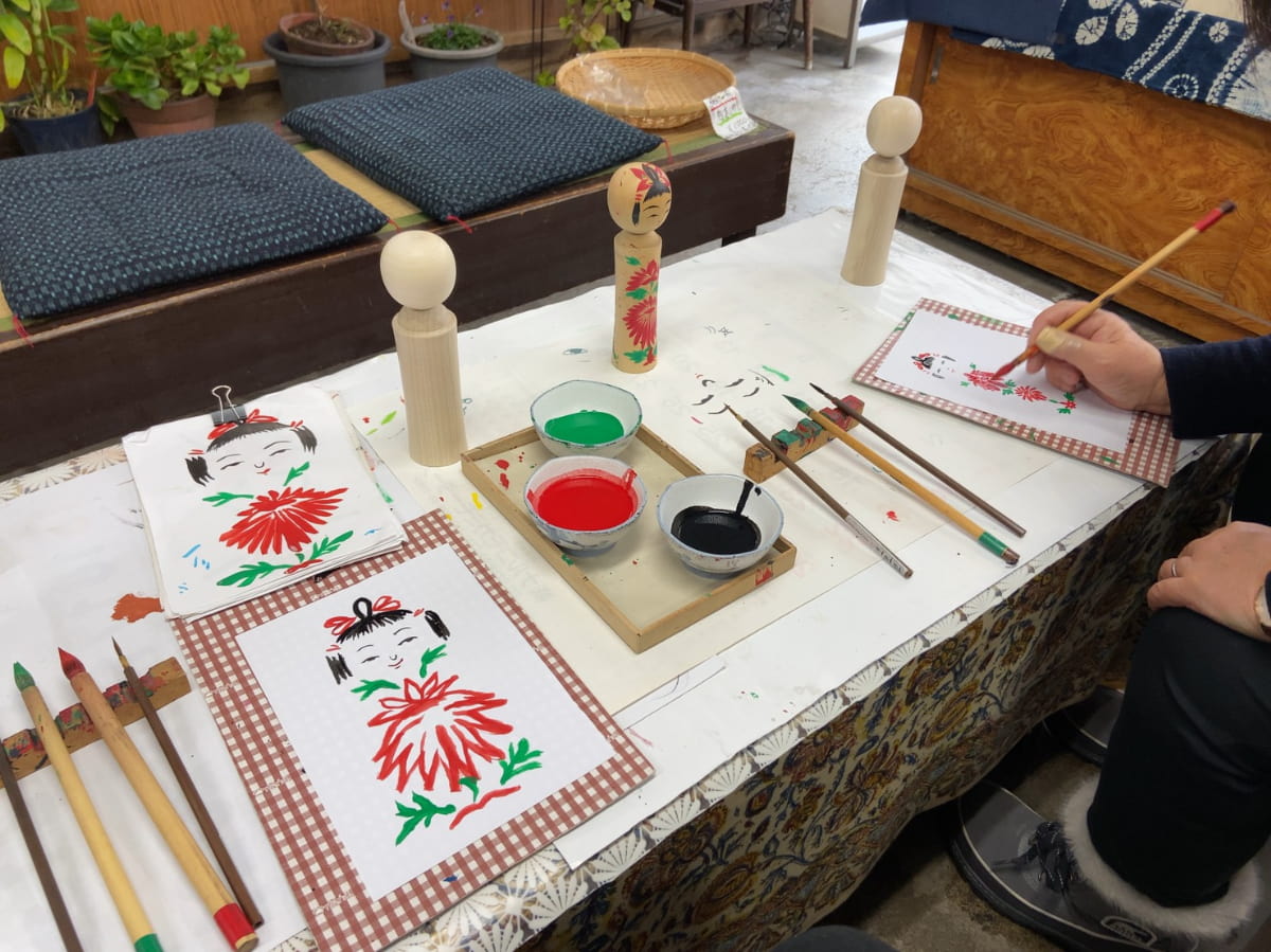 岡崎斉の店ではこけし製造の様子が見学できるほか、自分で自由に絵付けができる体験もできます。(体験料:1,000円)