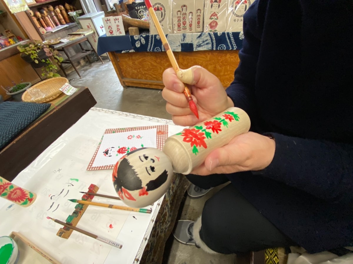 鳴子は日本有数のこけしの産地で、岡崎斉の店ではこけしの絵付け体験(1,000円)もできます。