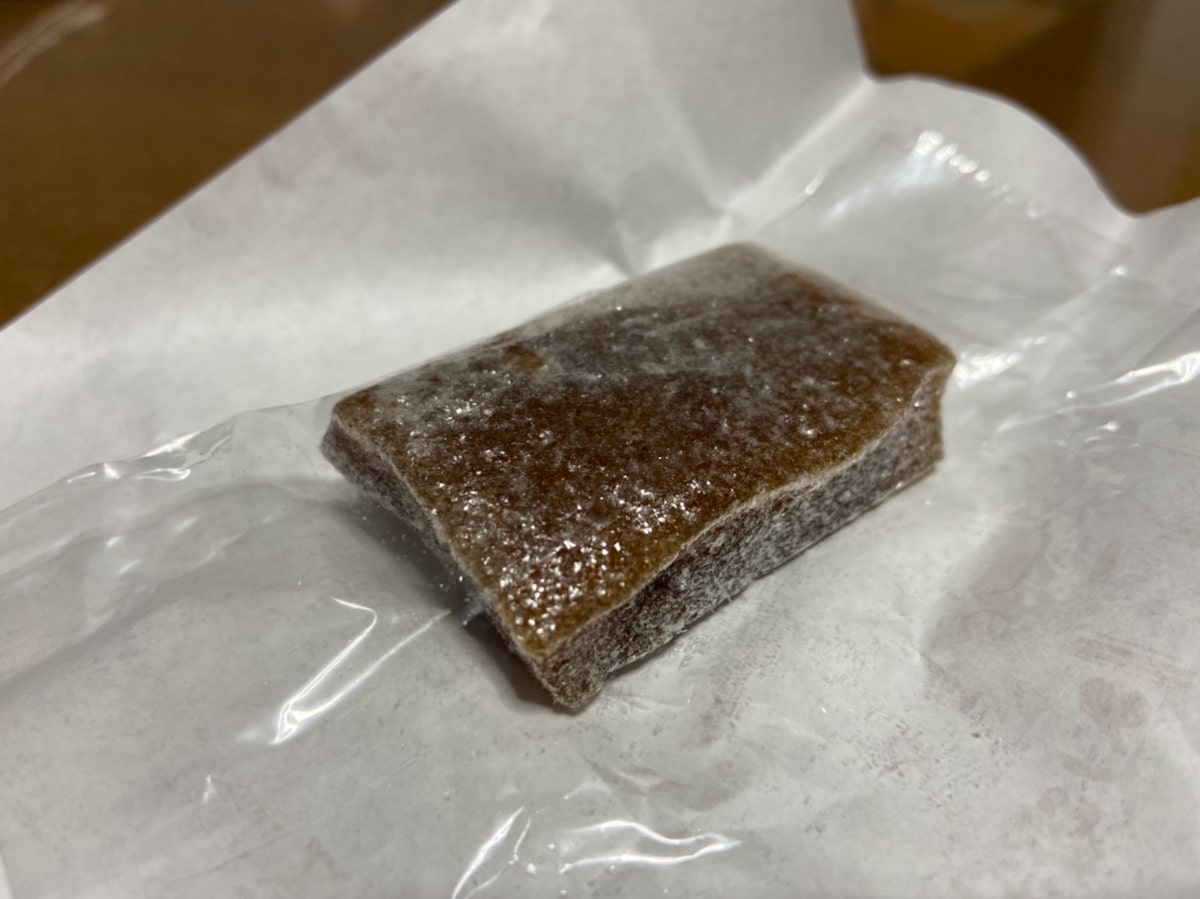 わらび餅はもちもちして弾力があり、クルミの風味も合わさって食べやすいお菓子となっています。