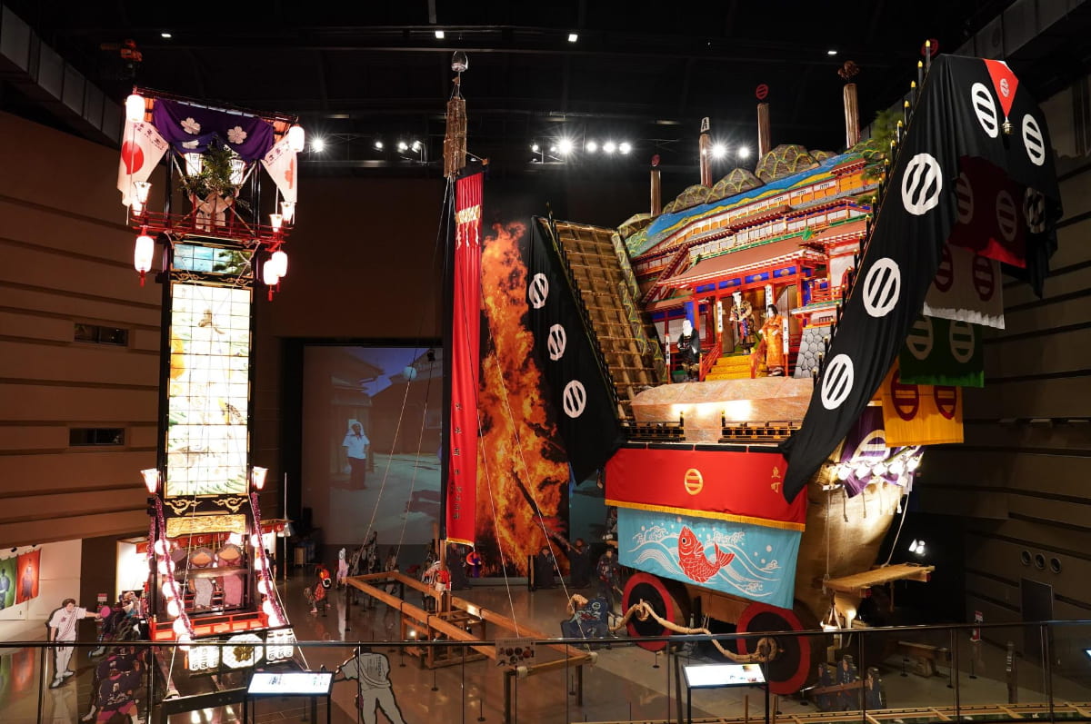 和倉温泉のある七尾市や能登地方(のとちほう)で昔からお祭りの際に使われる、巨大な山車(だし:※「でか山」と呼ばれることもあります)やキリコが間近で見れる貴重な会館です。