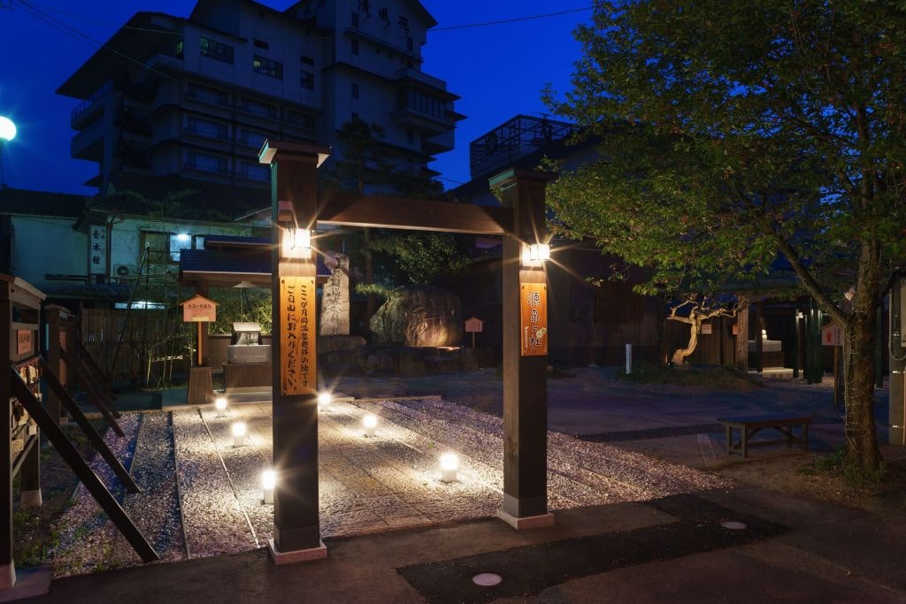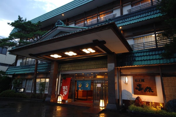 ランチのあとは純和風で堂々とした佇まいの宿泊施設「村上館湯伝(むらかみかんゆでん)」で立ち寄り入浴をします。