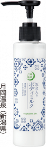 2014年から発売されている「月岡温泉 源泉入り ボディミルク」は、月岡温泉の源泉が配合されたボディミルク。