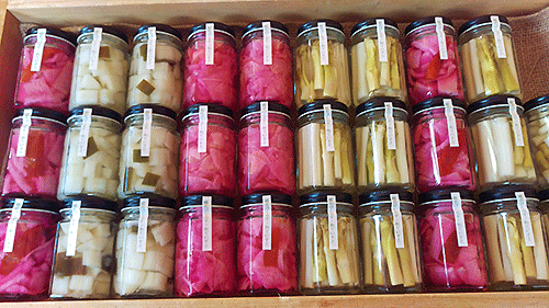 「嬬恋(つまごい)ぴくるす」(100g 650円)は、長野県産の野菜を中心に使用したピクルスです。