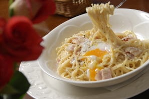 濃厚なクリームととろっとした半熟卵がよく絡み、優しい味わいが口の中に広がり、自然と笑顔が溢れます。
