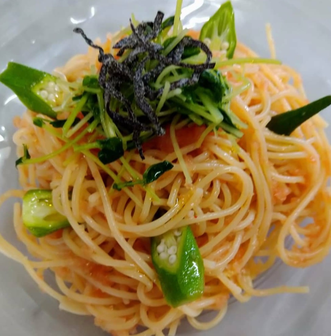 パスタメニューが豊富で、特におすすめなのが「明太子と大根おろしの冷製パスタ」。