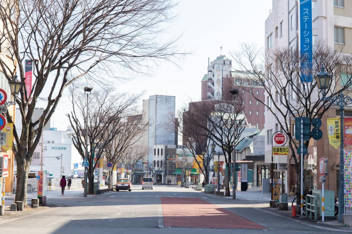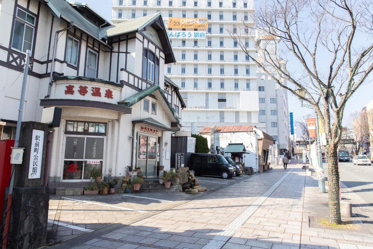 別府温泉へ向かう通りは、別府駅前から多くの飲食店やホテルが所狭しと立ち並んでいます。