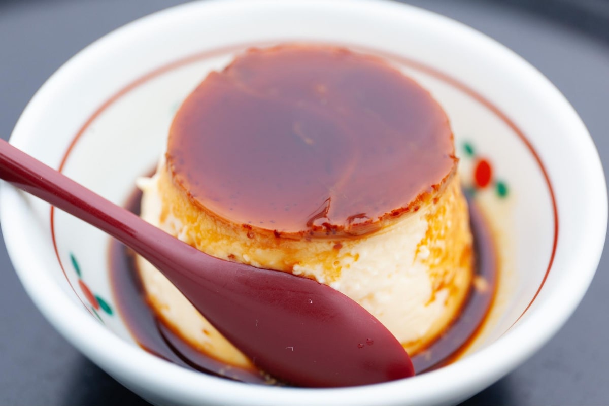 濃厚でマイルドな食感の卵に、ほろ苦いカラメルソースの組合せが楽しめる、昔ながらのプリン。