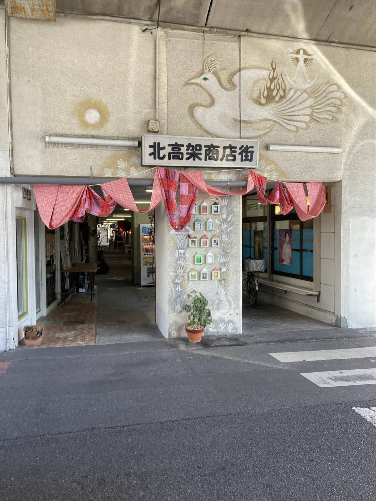 別府駅・西口から高架橋沿いに、徒歩3分ほどの所にある「北高架下商店街」の中にあります。