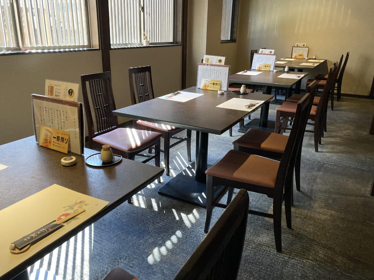 店内はカウンター席とテーブル席があり、落ち着いた和の空間です。