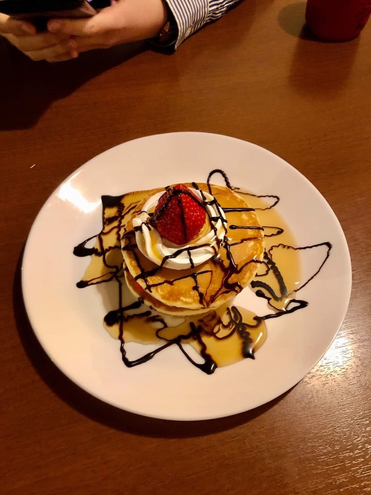 シロップとチョコを絡めていただく、どこか懐かしさ感じるパンケーキです。