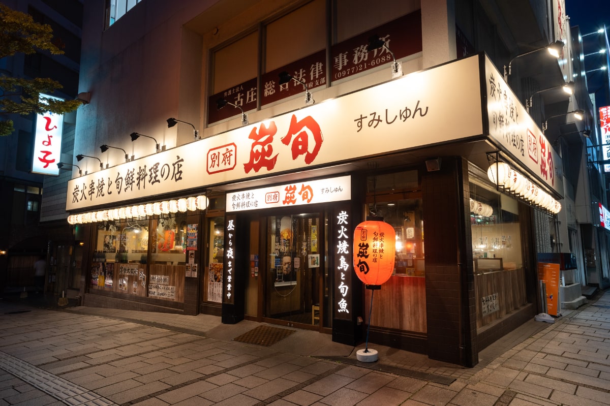 「別府 炭旬(すみしゅん)」は、炭火焼の串焼きと旬の海鮮料理が楽しめる全国展開の居酒屋です。