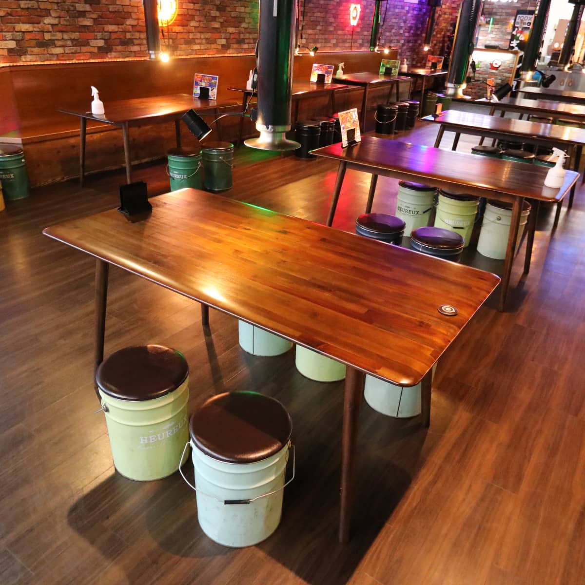 カウンター席と、仲間同士で座れるテーブル席があります。カウンター席は、アクリル板の仕切りがついており、コロナ対策も万全です。