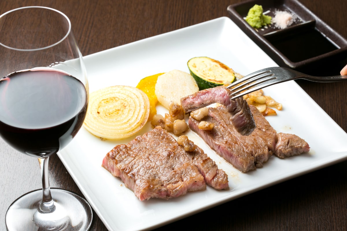 メニューには「ヒレステーキコース」(120グラム8,200円~)や「サーロインステーキコース」(120グラム7,500円~)などがあり、上質で噛むほどに口の中に旨味が広がる豊後牛が堪能できます。