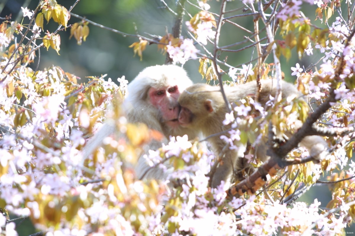 ニホンザルの社会は多くのオトナメスとそのコドモで形成され、オトナのオスは全体の2割~3割程です。オスたちは成長すると群れから出て行き、単独で生活するようになります。ずっと同じ群れの中にいると遺伝子が濃くなる為それを避ける為と言われますが、ハッキリしていません。少なくとも「ケンカで負けたから」とか「下位でいる事に嫌気がさして」といった悲しいストーリーが背景にある訳ではなく、あくまで「本人の自由」で群れから出て行きます。ボスという存在が群から出て行く。すると2番目だったサルが自然と順位が来る上がる…という具合にサルたちの順位は変わり、いわゆる「ボス争い」という戦いはありません。