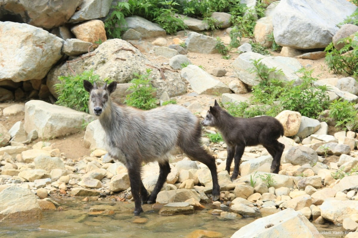 地獄谷野猿公苑では、観察できるニホンザルの他にも野生動物が生息しています。近隣に生息するニホンカモシカは、時折公苑や遊歩道に現れます。